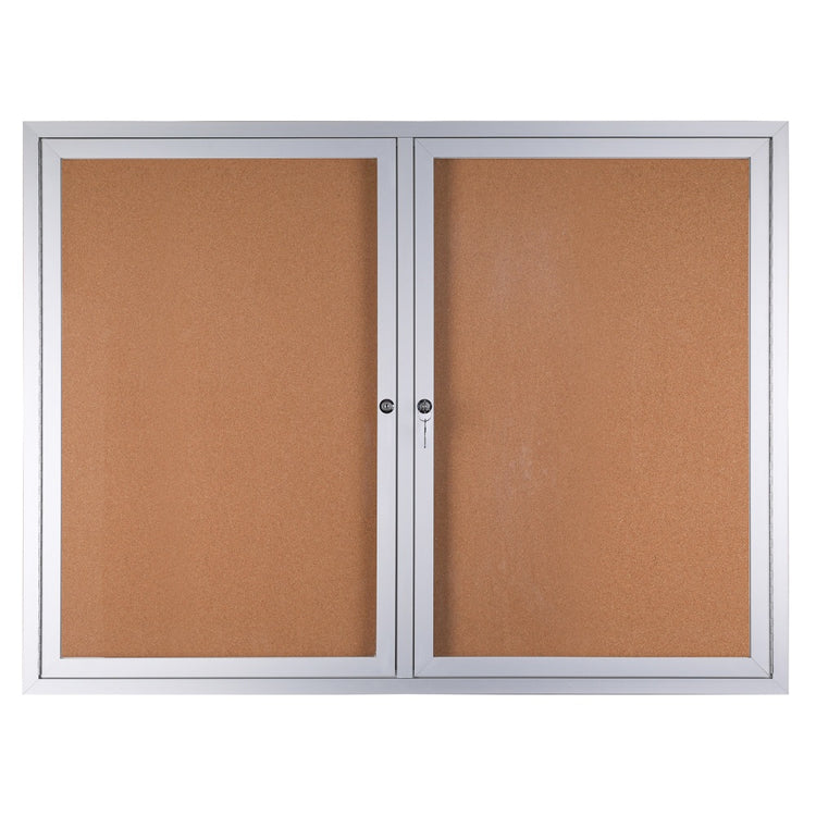 WorkPro Enclosed Double-Door Cork Bulletin Board, 36in x 48in, Aluminum Frame With Silver Finish
