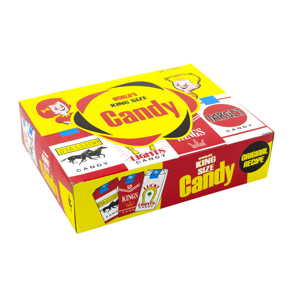 - White candy sticks resemble authentic cigarettes for a retro look.
