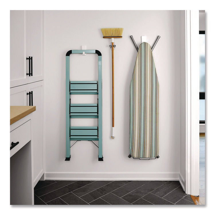 - Hang heavy duty backpacks, ironing boards, stepladders, clipboards, brushes, dog leashes, kitchen utensils and accessories where you want without nails or a hammer.
