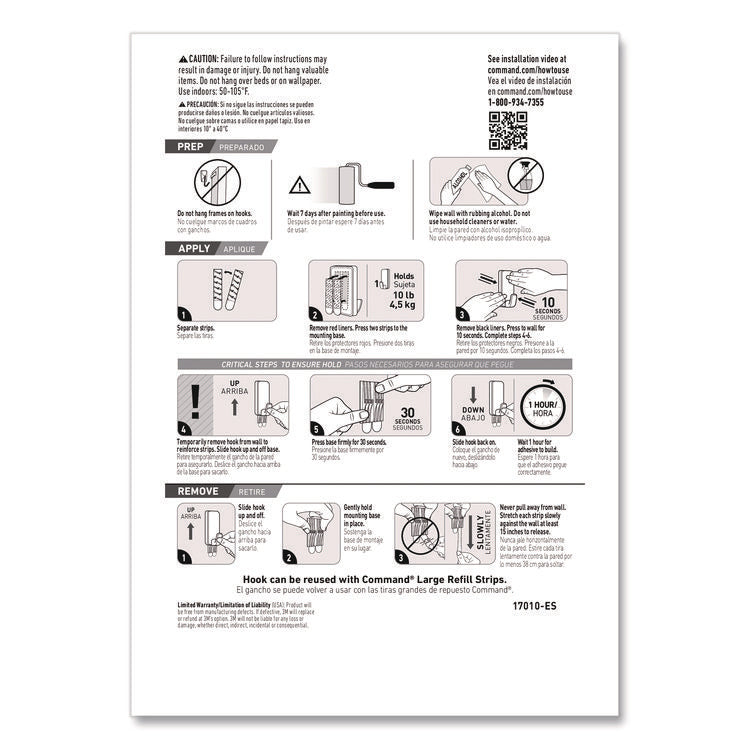 - Includes extra large utility hook and Command Strips.