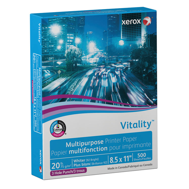 Xerox Vitality 3-Hole Punched Multi-Use Printer & Copy Paper, White, Letter (8.5in x 11in), 500 Sheets Per Ream, 20 Lb, 92 Brightness, FSC Certified