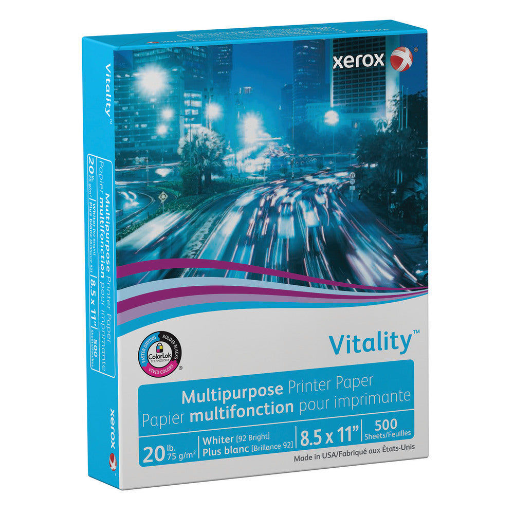 Designed for high-volume printing and copying, Xerox® Vitality® paper can help you complete daily tasks on time. ColorLok technology ensures rich, vibrant colors on every page, and this Xerox printer paper provides consistent performance to minimize jams and downtime.